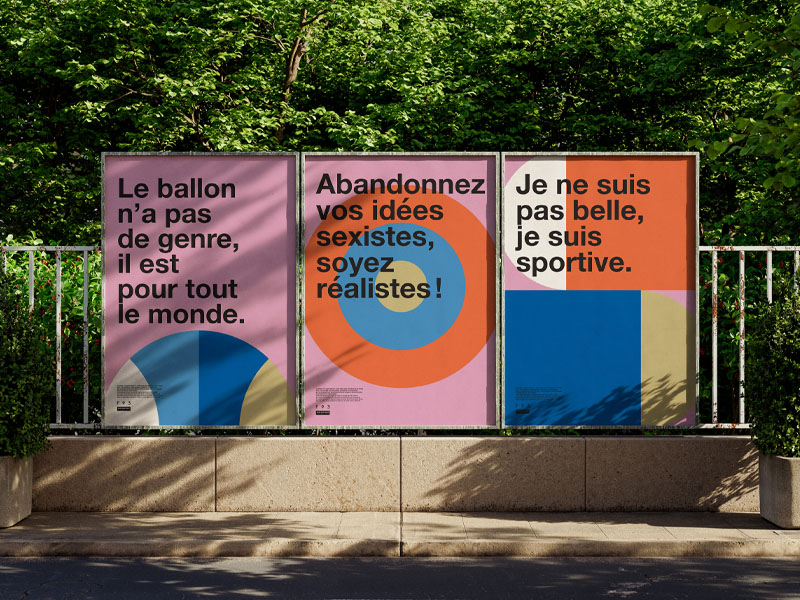 Dans le cadre des Jeux Olympiques et Paralympiques, j’ai accompagné le projet « Un sport genré ? » pour créer une série d’affiches A1 mettant en scène des phrases extraites des recherches d’élèves de 3e sur la question du sport et du genre. L’enjeu était de traduire graphiquement leur combat contre les stéréotypes sexistes dans le sport à travers un dispositif visuel fort et immédiat.