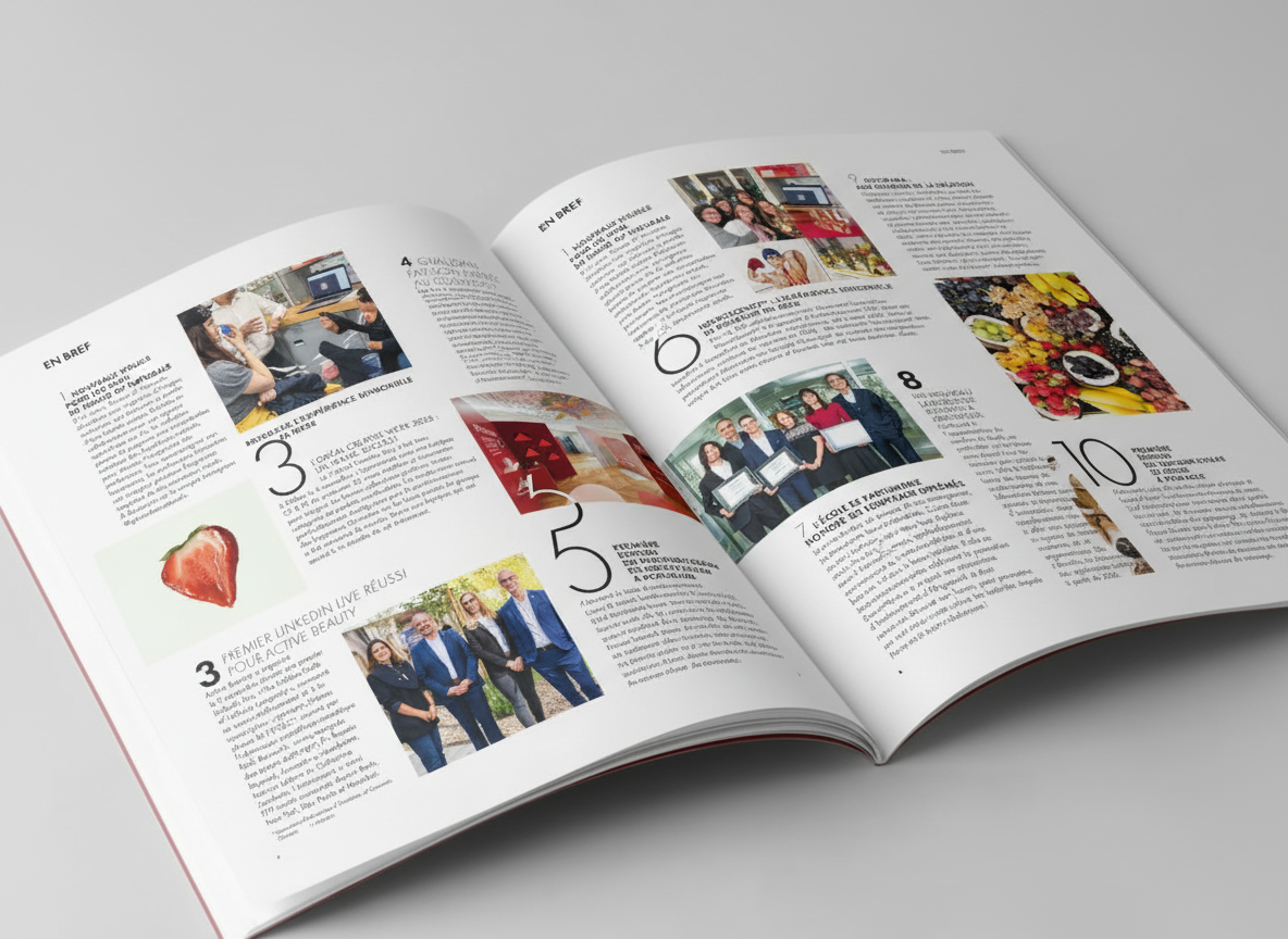 Grâce à une mise en page aérée et une hiérarchie typographique redynamisée, cette évolution transforme le support en un média plus engageant. Elle respecte les codes de la charte graphique tout en célébrant l’expertise et la culture d’entreprise avec élégance.